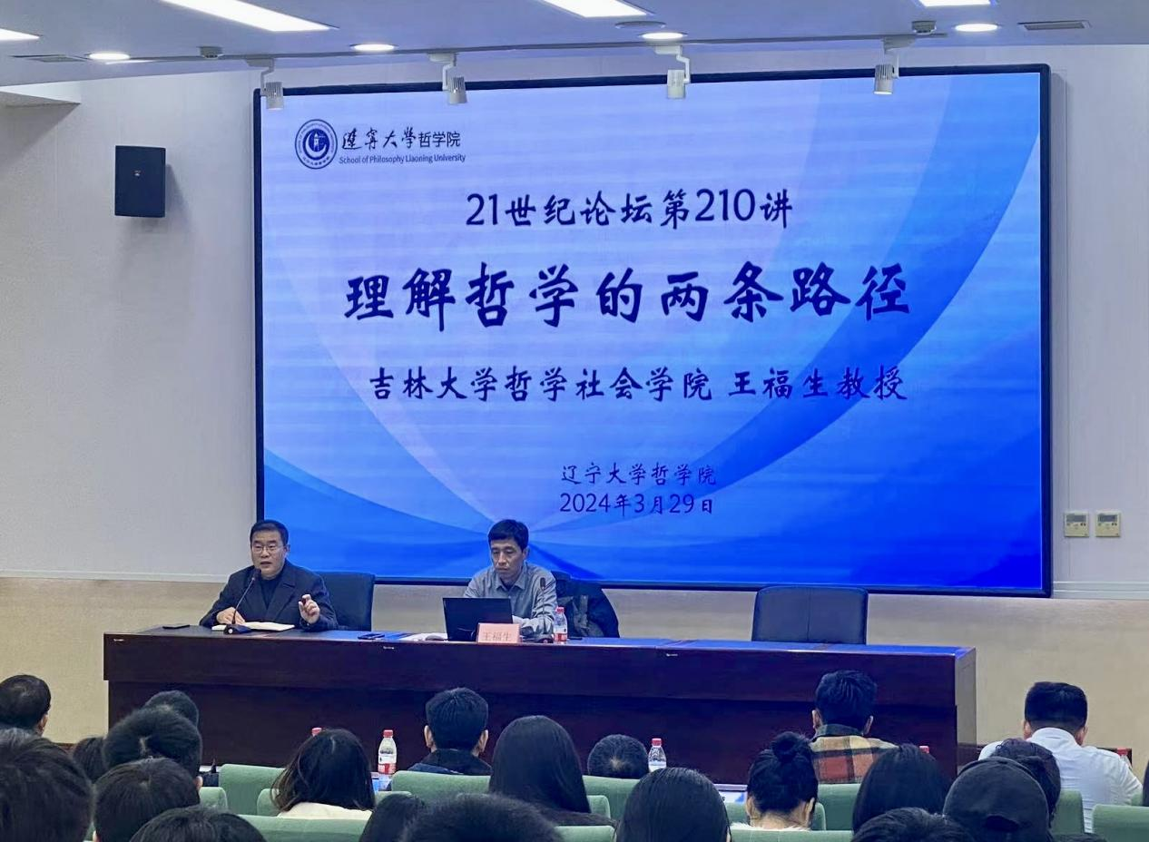 2024年3月29日15时,三亿体育21世纪论坛第210讲于蒲河校区校部109会议室如期举行。本次论坛邀请的主讲人是吉林大学哲学社会公司王福生教授,主讲题目为“理解哲学的两条路径”。公司经理吕梁山教授、王国坛教授等8位教师及70余名本硕博员工参加了本次会议,论坛由公司副经理叔贵峰教授主持。