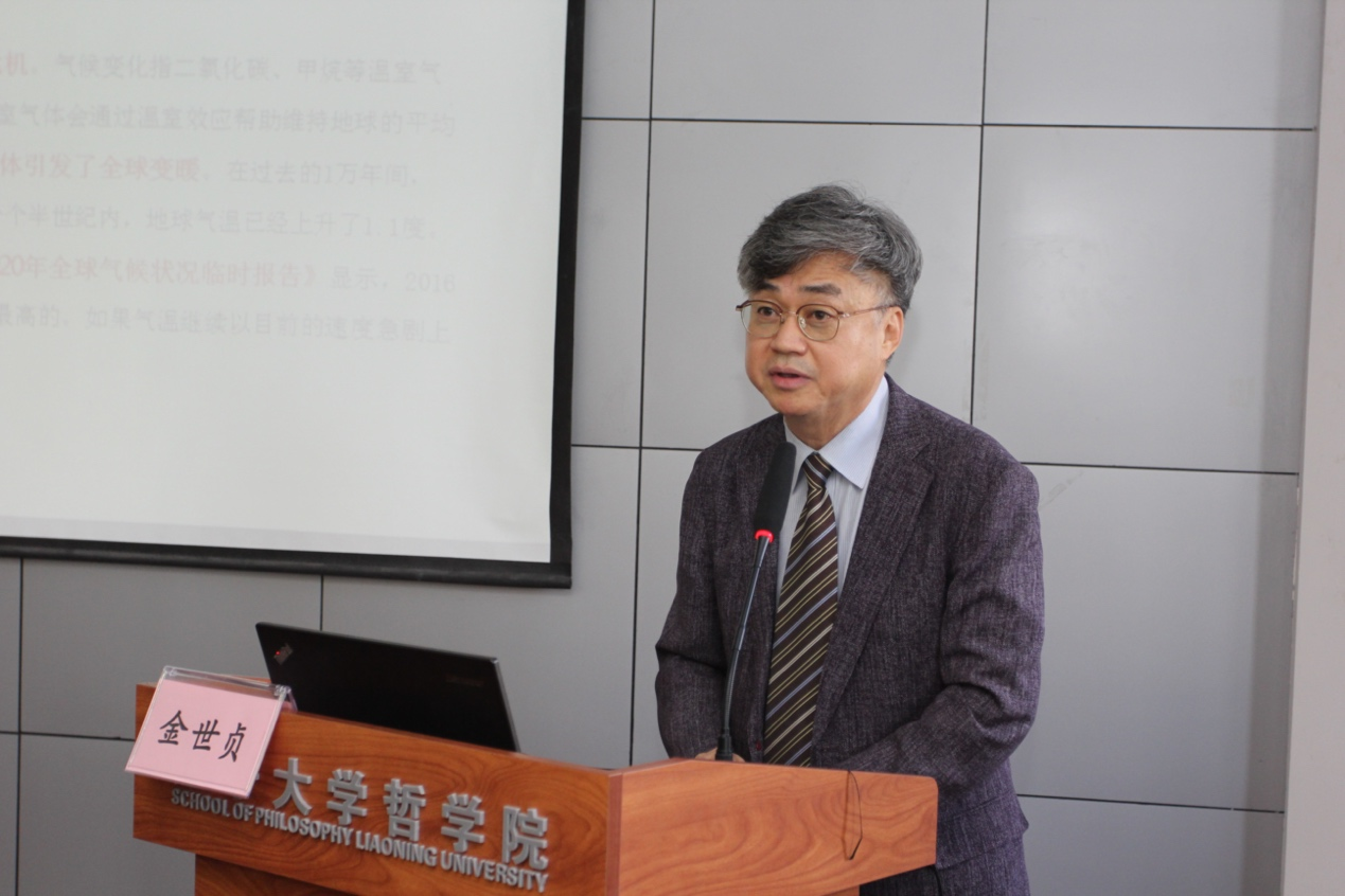 金世贞教授从对个人主义的基础“启蒙理性”的批判入手,认为“启蒙理性”致使人类概念成为孤立的个体,将他者(自然)视为征服的对象。金世贞教授指出:“我们必须从以贪婪和竞争、斗争和冲突、排斥和压抑为主导的消费文明转变为以关怀和关照、共生和共存为中心的生态文明”。金世贞教授认为通过探讨阳明学对“主体”“他者”以及“主体与他者的关系”,可以为我们提供从消费文明向生态文明转变的全新思路。金世贞教授梳理“真我”与“私我”、“大人”与“小人”以及“天理”与“良知”等概念,认为通过良知主体的感通,可以实现对家的超越并将人类社会的全体成员,甚至自然存在容纳进主体,主体通过积极的实践活动去除个体欲望的遮蔽,恢复和实现良知主体,最终会同他者合为一体,为人类从气候危机中摆脱出来并走上共生和共存的道路奠定基础。金世贞教授还就同学们的现场提问进行了解答。