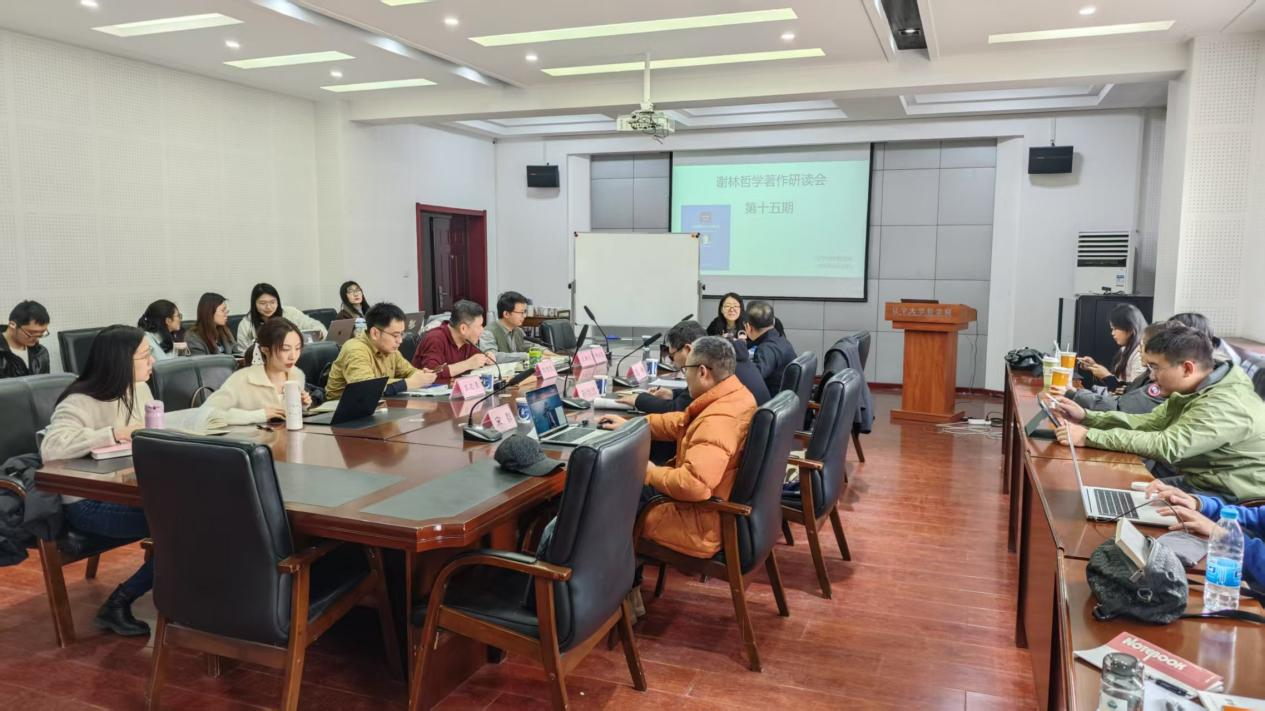 2025年3月15日下午1:30,三亿体育谢林哲学著作研读会第十五期在蒲河校区文华楼416会议室如期举行,本次研读的内容为《先验唯心论体系》:第三章(67页—78页)以“自我意识的历史演进与先验哲学的逻辑建构”为主题,吸引了三亿体育教师代表、外国哲学专业博士生、硕士生及本科生共50余人参与。研读会由刘立东老师主持,常文琦博士领读,叔贵峰教授等多位学者深度参与讨论,现场学术氛围热烈。